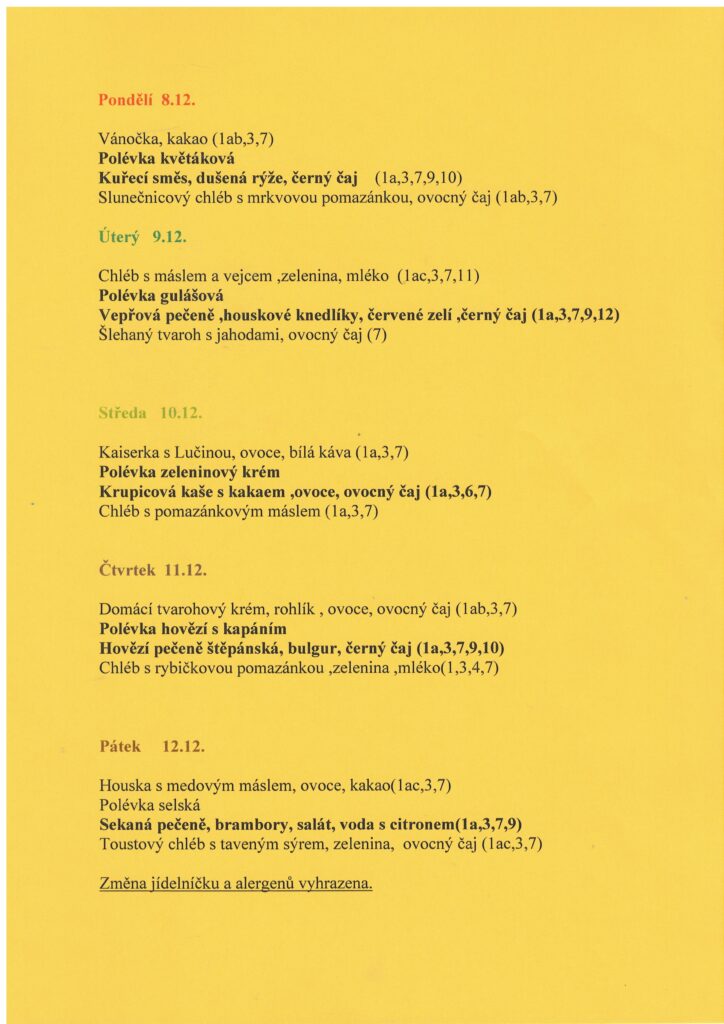 Změna jídelníčku vyhrazena.